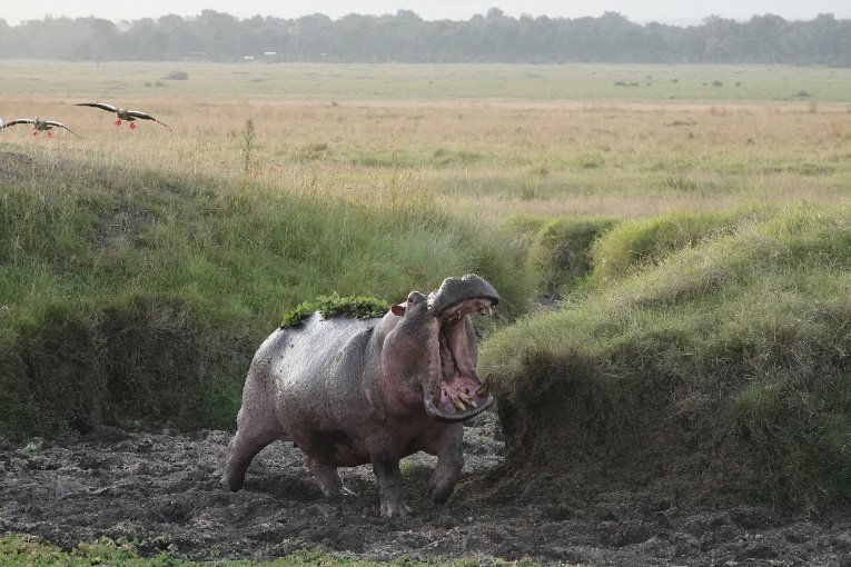 The marshy pools that are so characteristic of this corner of the Reserve were already receding towards the end of November, especially those frequented by hippos, buffalo and elephants. With fewer water sources to share, hippo interactions became increasingly tense, as they shuffled between the Mara River and their thick, muddy wallows out on the plains.