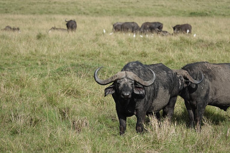 With much of the Musiara marsh drying up, elephants moved between the riverine forest and the open plains – often crossing right in front of our vehicles during morning drives. Cape buffaloes are abundant year-round in this part of the Reserve, as they rarely stray too far from the permanent water sources of the Marsh and its environs.