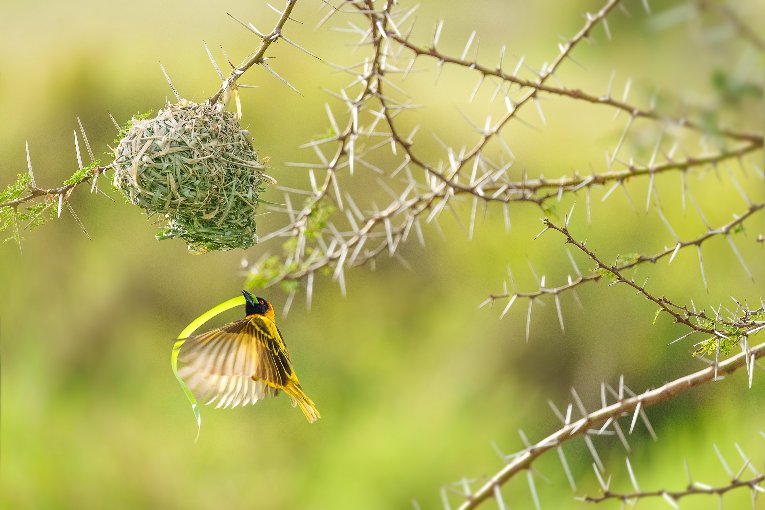 Often, the first sound you hear at dawn comes from the Black-headed Weavers. These birds (formerly known as Village Weavers) provide the energetic background hum to camp life. Despite the lack of heavy rain, their breeding instinct is unstoppable.