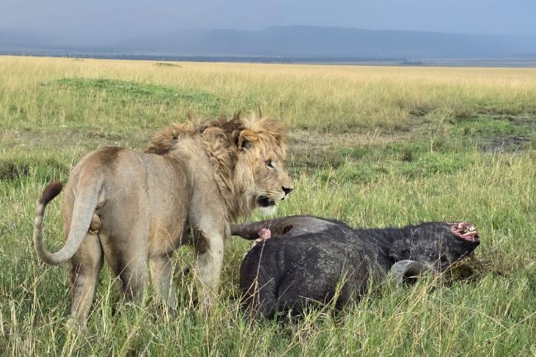 Nzuri with a buffalo kill – photo credit Amos Topisia