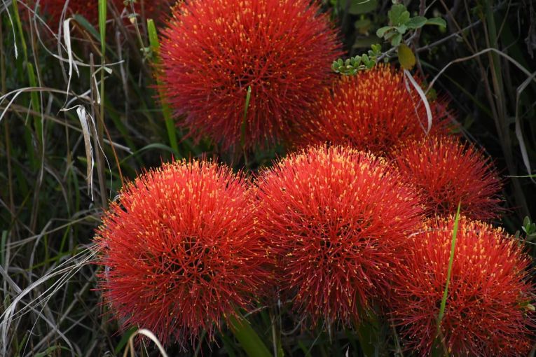 This October, we received 54mm of rainfall, which was enough to ignite a protrusion of fireball lilies (Scadoxus multiflorus) – a species of bulbous plant native to most of sub-Saharan Africa. For much of the year, these remarkable plants lie hidden beneath the soil, but with the arrival of the rains, a single flower stalk emerges, revealing a magnificent cluster of blood-red blooms dusted with golden pollen.