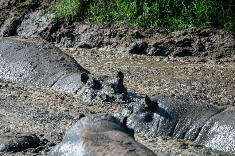 Dense pods of hippos are found packed together in the Mara River’s tighter bends, where the current slows; they prefer these deeper sections over the gently sloping banks favoured by crocodiles. The air is filled with grunts, snorts, and the constant jostling as they compete for space.