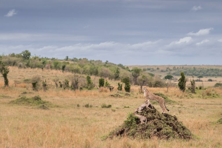 A common first glimpse of cheetahs in the Masai Mara might be of one on a high vantage point, like a fallen log, or even the top of a termite mound. They scan the horizon and read the wind before choosing their moment.