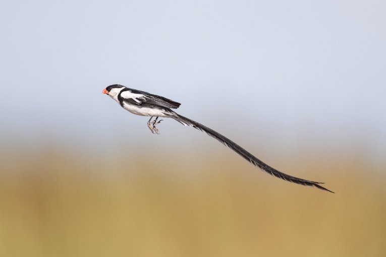 Male pin-tailed whydahs have an elaborate courtship flight display