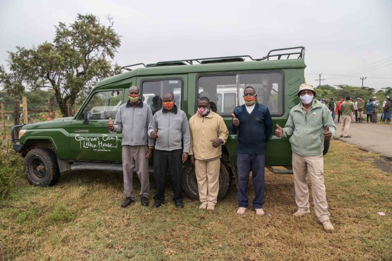 On the 7th of August, we facilitated our third community food drive for the original eighty families based in and around the Mara Rianda area of the Masai Mara. Heading out of Governors’ Camp that morning, we were greeted by the most beautiful dawn and a huge male lion lying on a mound of grass.